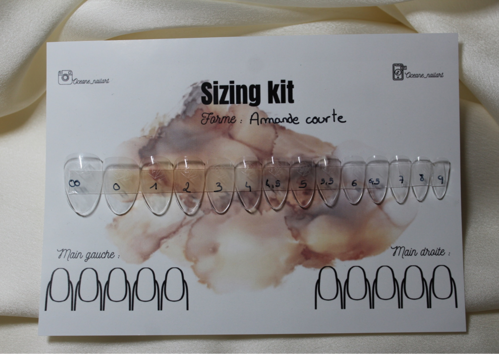 Noter la taille de chacun de vos ongles dans les petits emplacements en bas de la feuille.