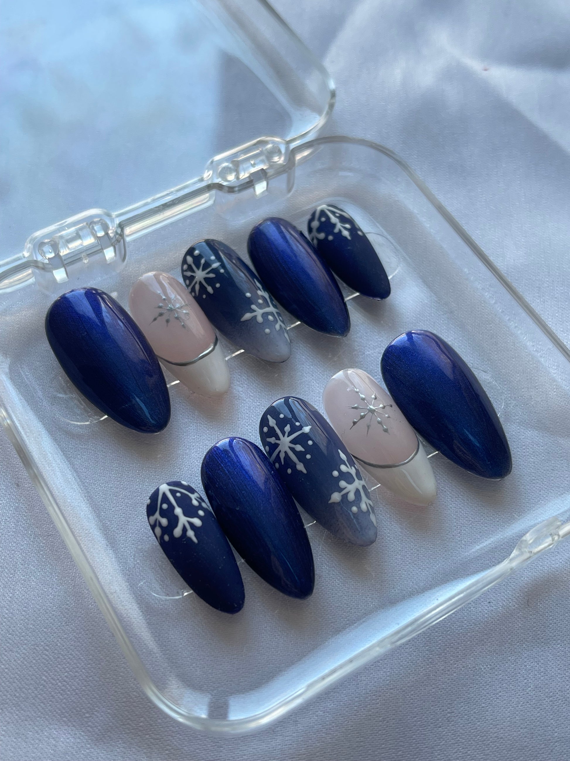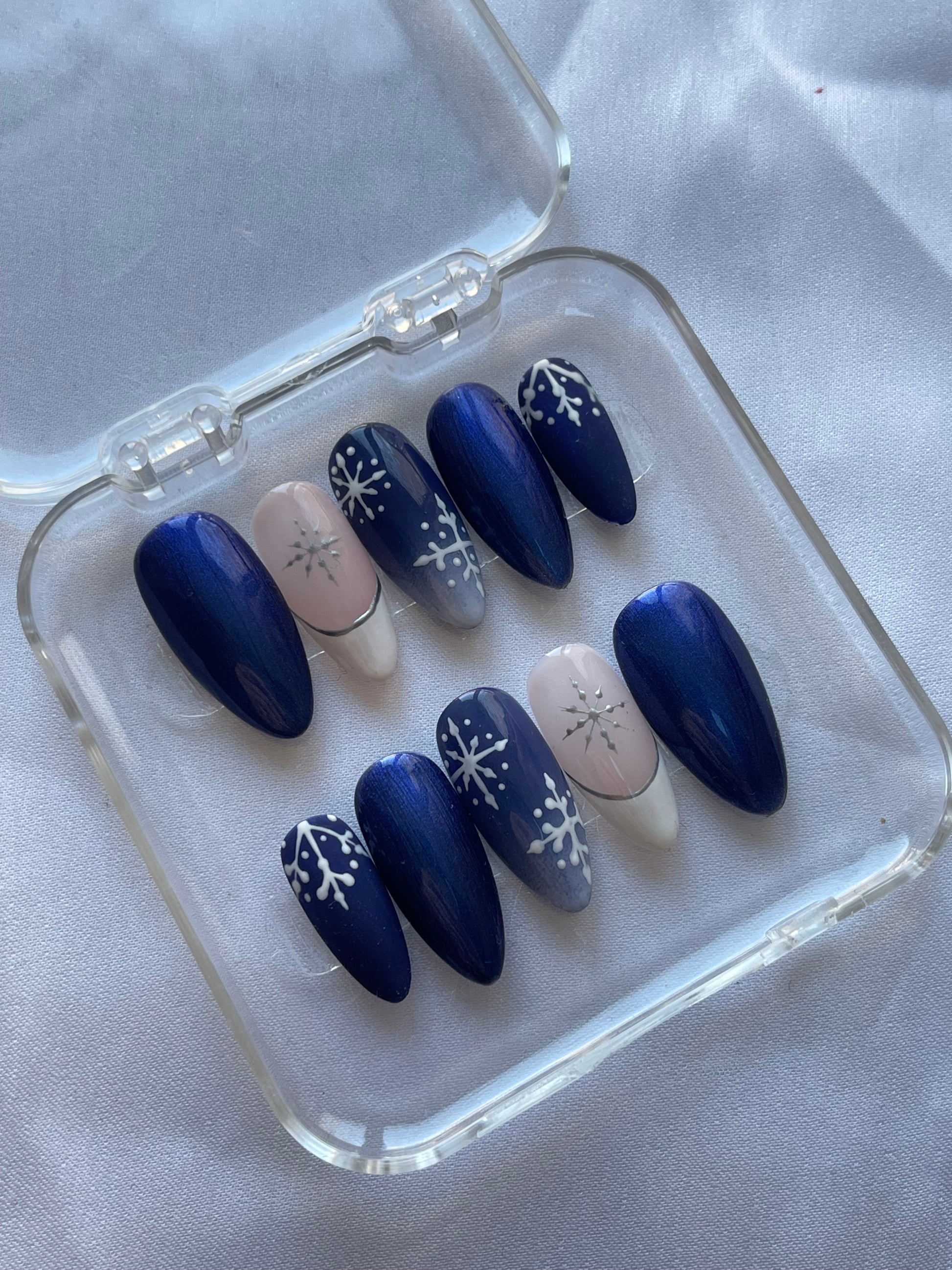 Press on nails fait mains, personnalisés, vendu avec le kit de préparations pour la pose des faux ongles.