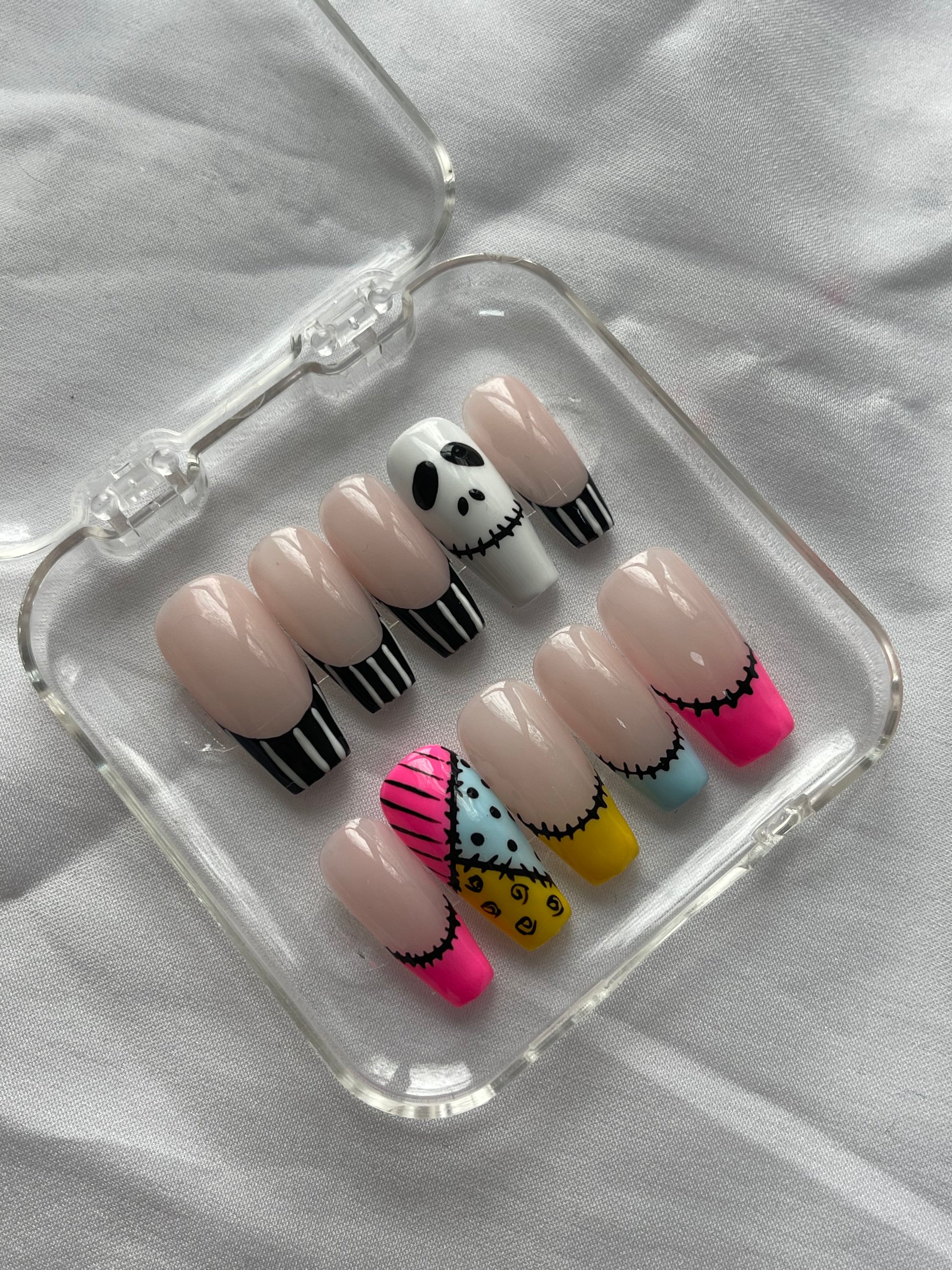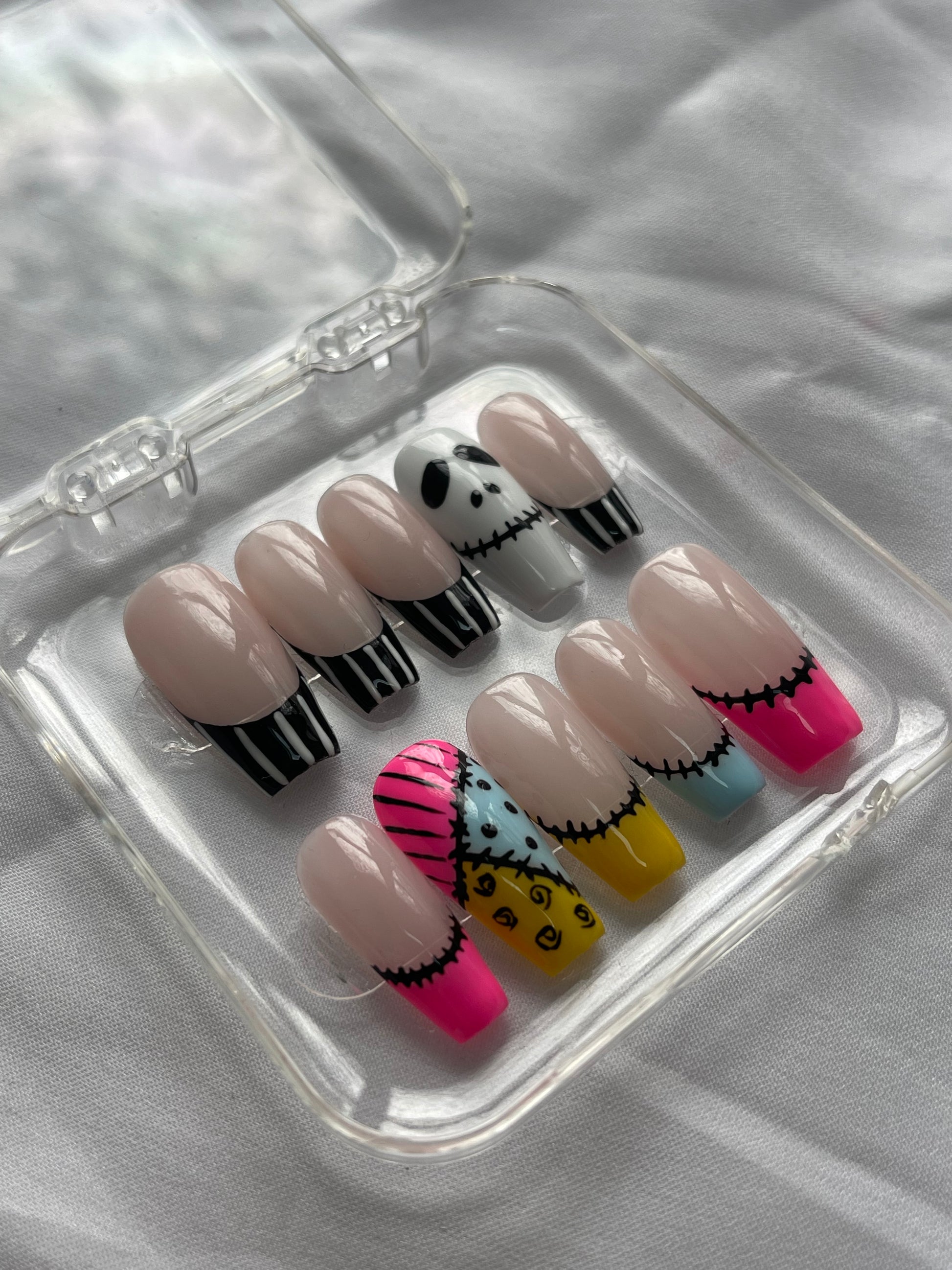 Press on nails fait mains, personnalisés, vendu avec le kit de préparations pour la pose des faux ongles.