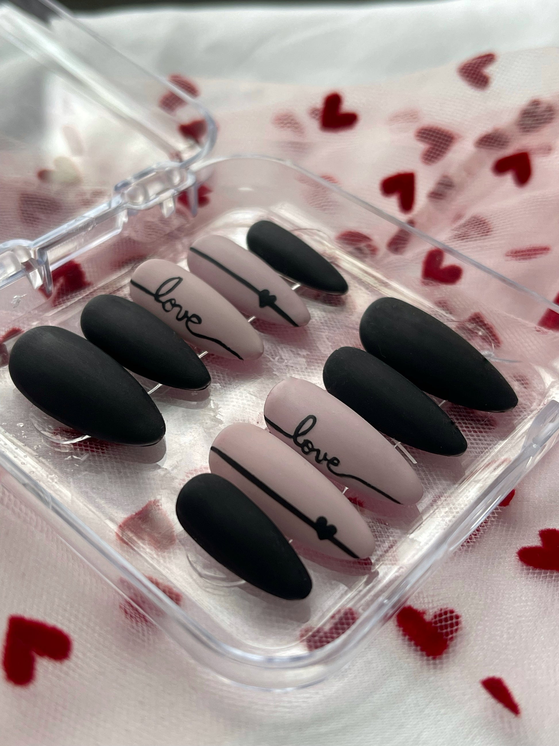 Press on nails fait mains, personnalisés, vendu avec le kit de préparations pour la pose des faux ongles.