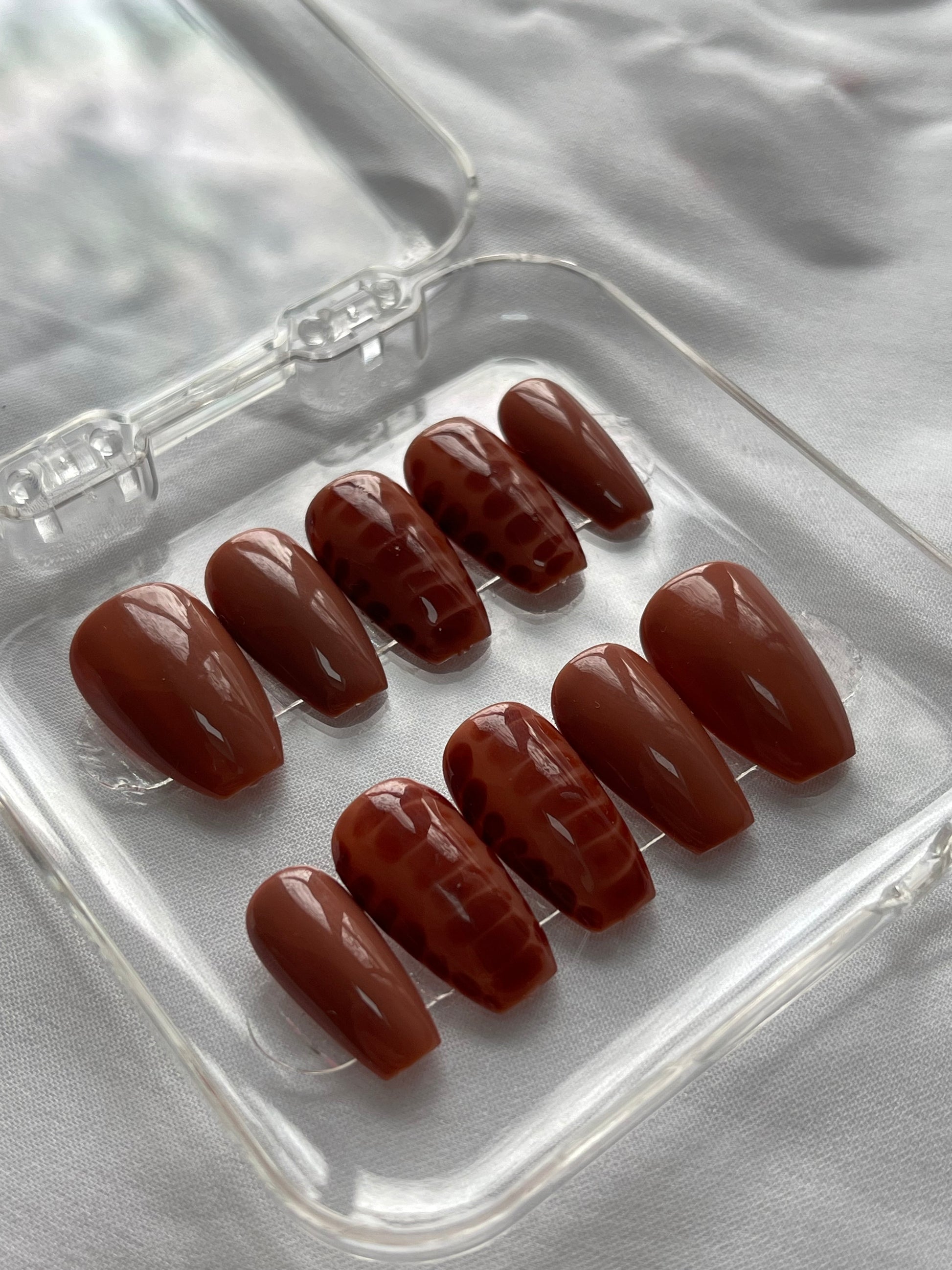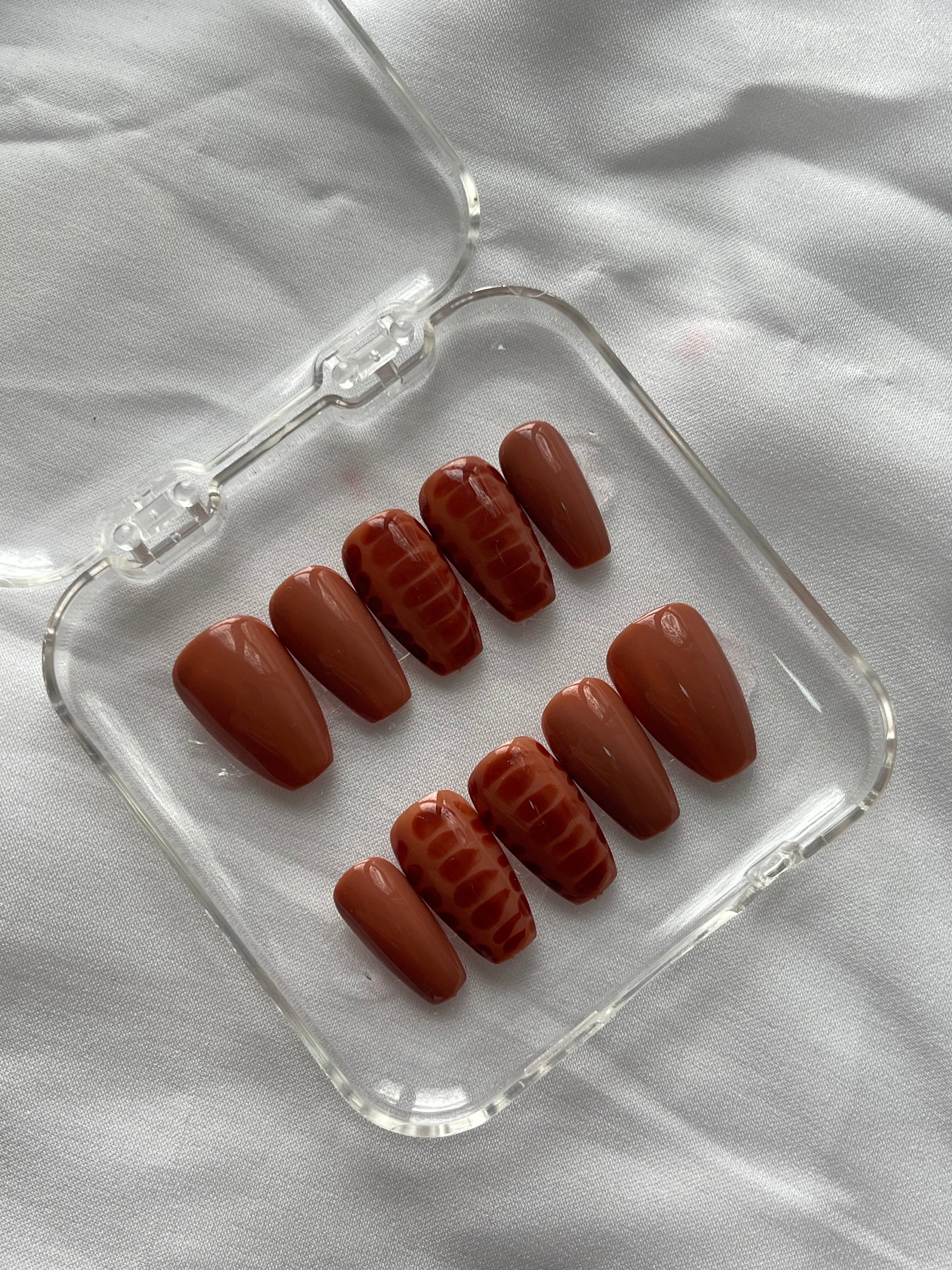 Press on nails fait mains, personnalisés, vendu avec le kit de préparations pour la pose des faux ongles.
