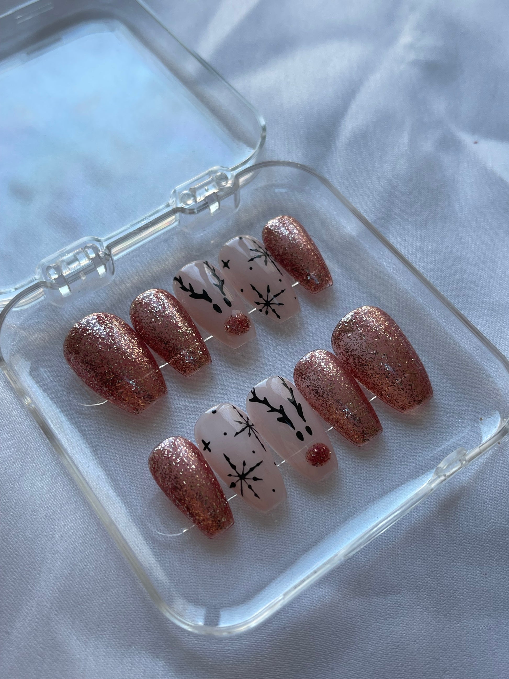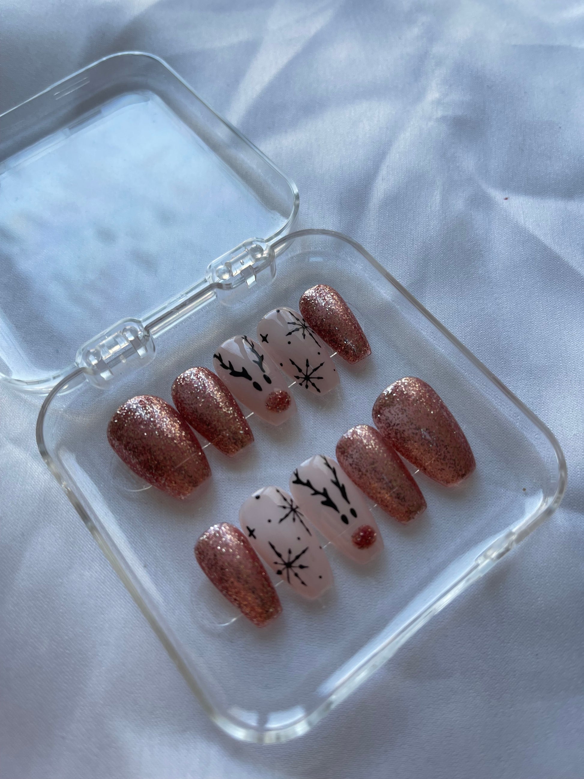 Press on nails fait mains, personnalisés, vendu avec le kit de préparations pour la pose des faux ongles.