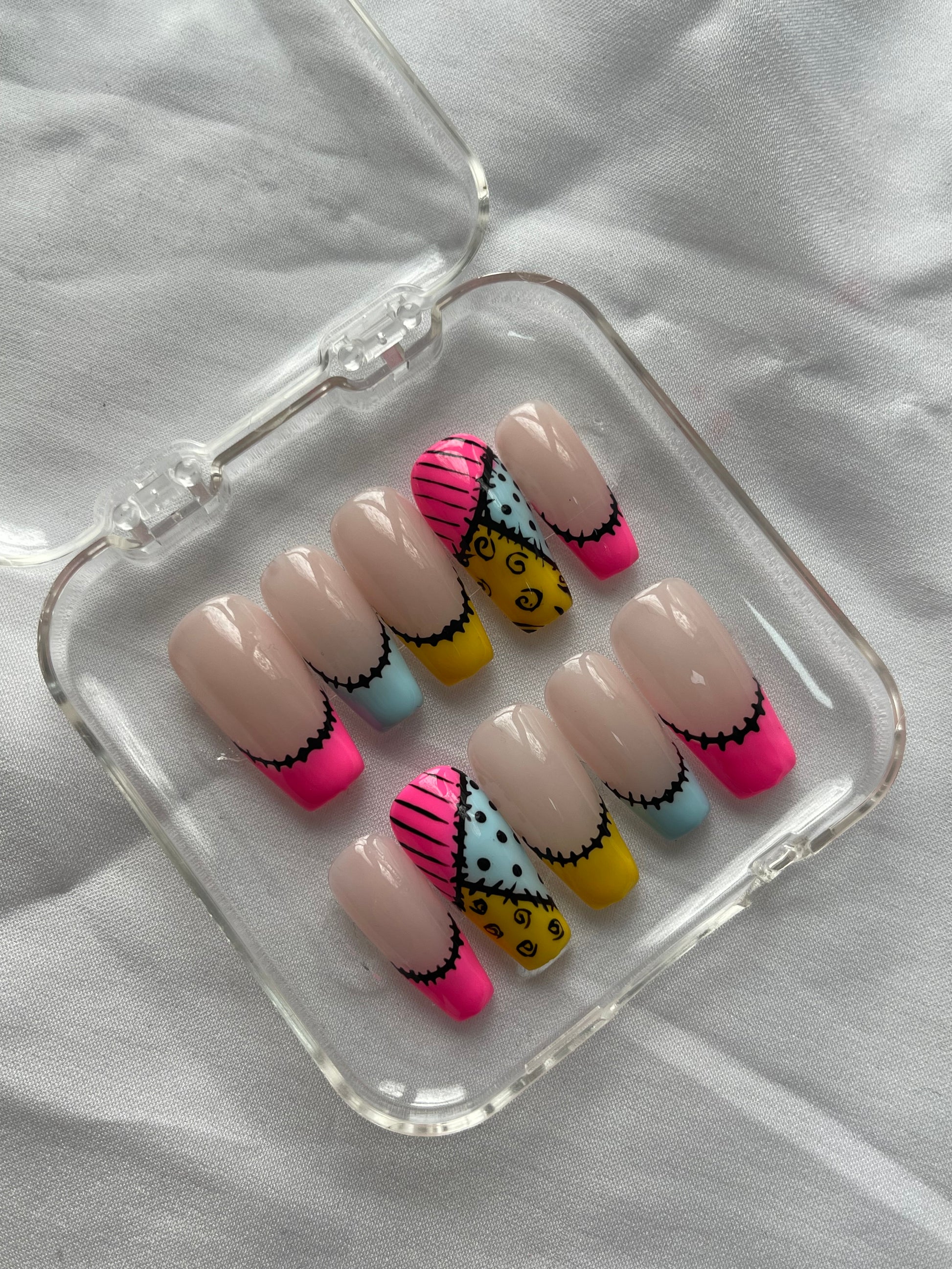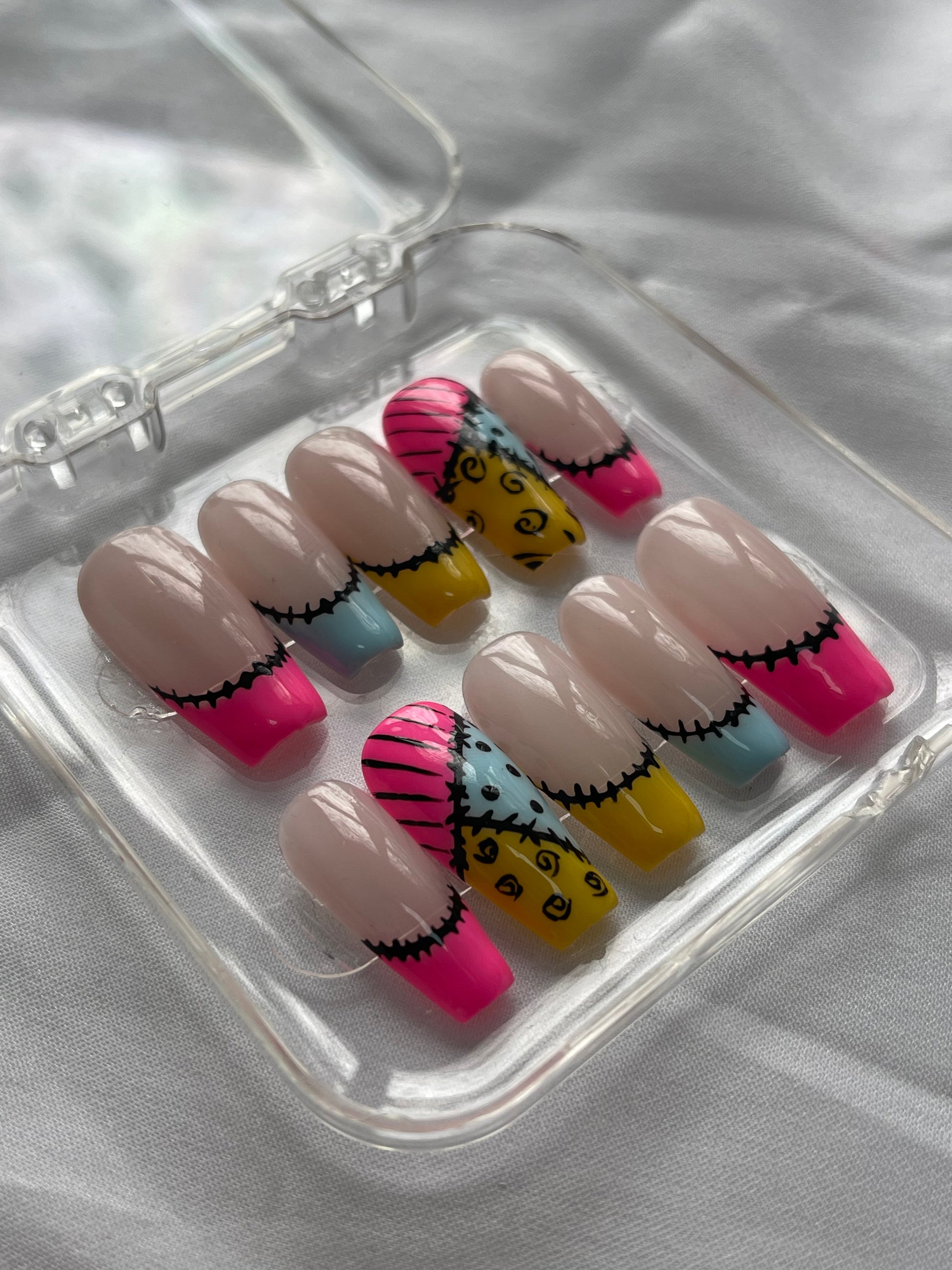 Press on nails fait mains, personnalisés, vendu avec le kit de préparations pour la pose des faux ongles.