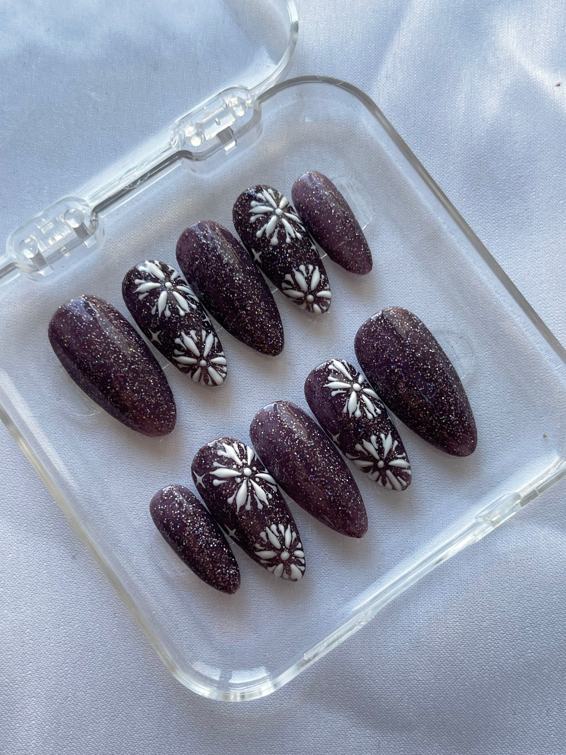 Press on nails fait mains, personnalisés, vendu avec le kit de préparations pour la pose des faux ongles.